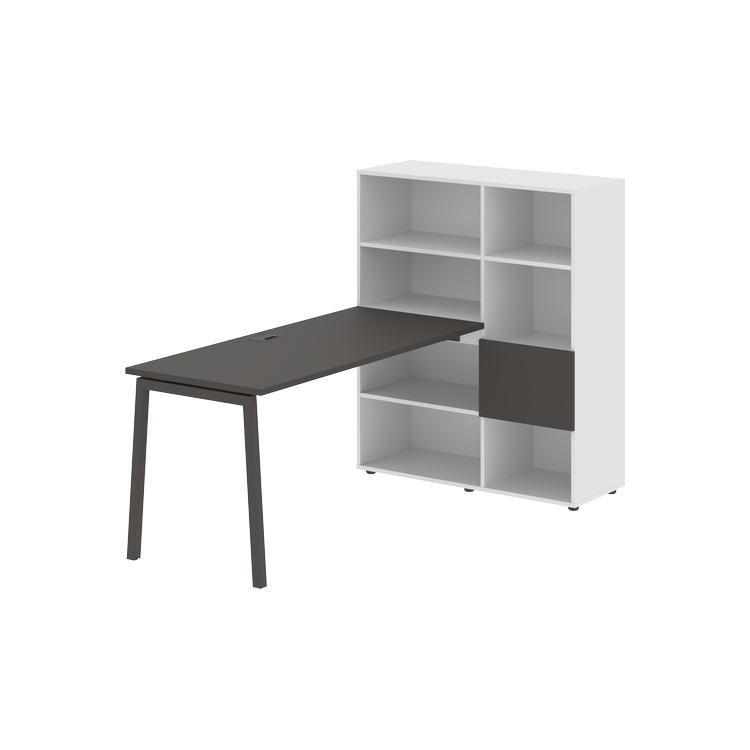 Столешница глубиной 670 мм, комплектуется регулируемой опорой L-образной формы из профиля трубы 40х40, комплектом телескопических траверс и двумя кронштейнами для крепления к стеллажу.