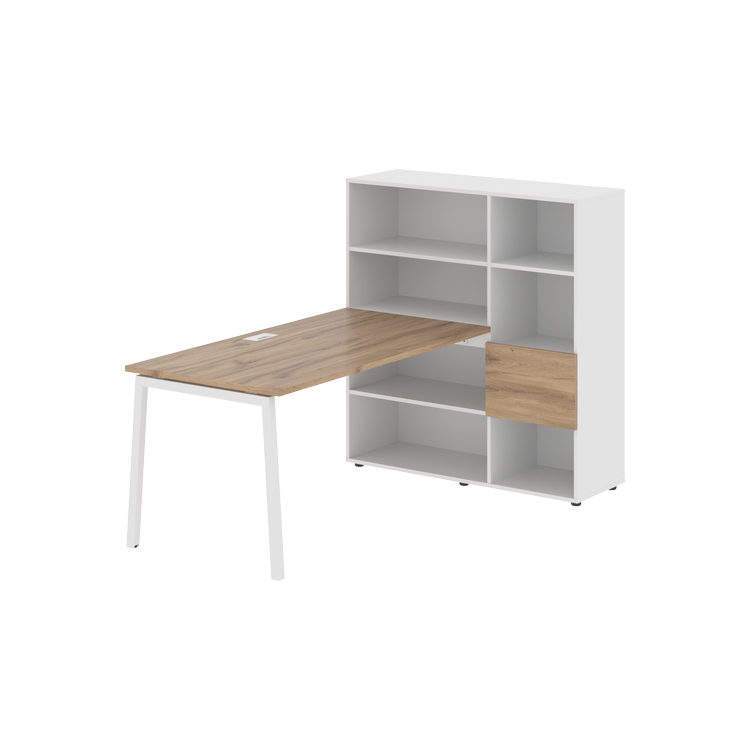 Столешница глубиной 800 мм, комплектуется регулируемой опорой L-образной формы из профиля трубы 40х40, комплектом телескопических траверс и двумя кронштейнами для крепления к стеллажу.