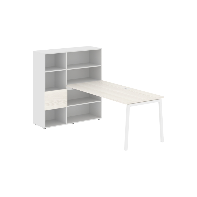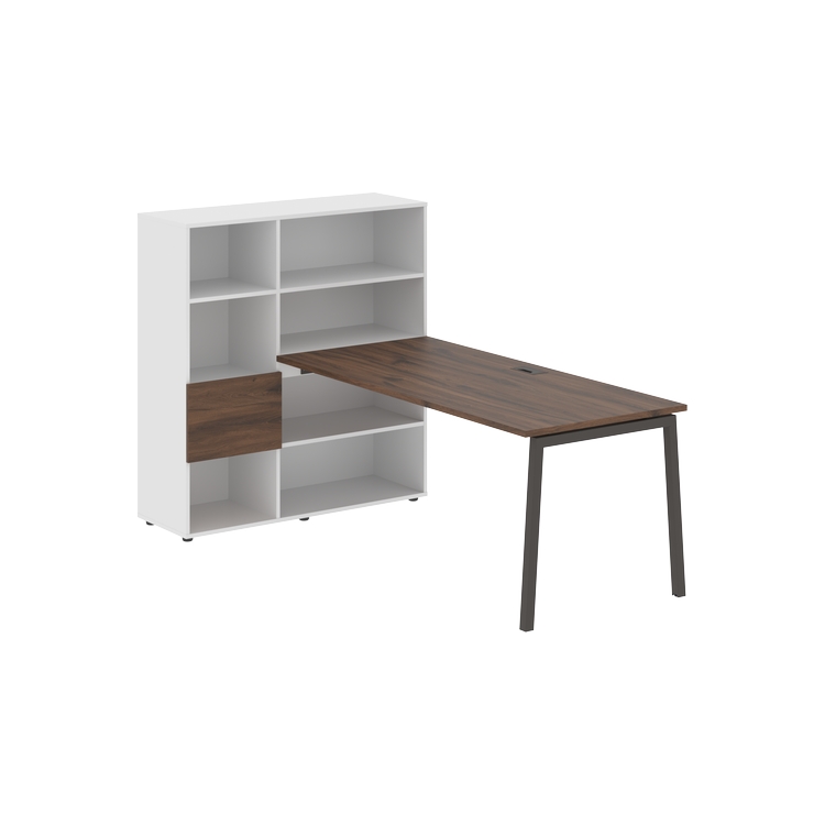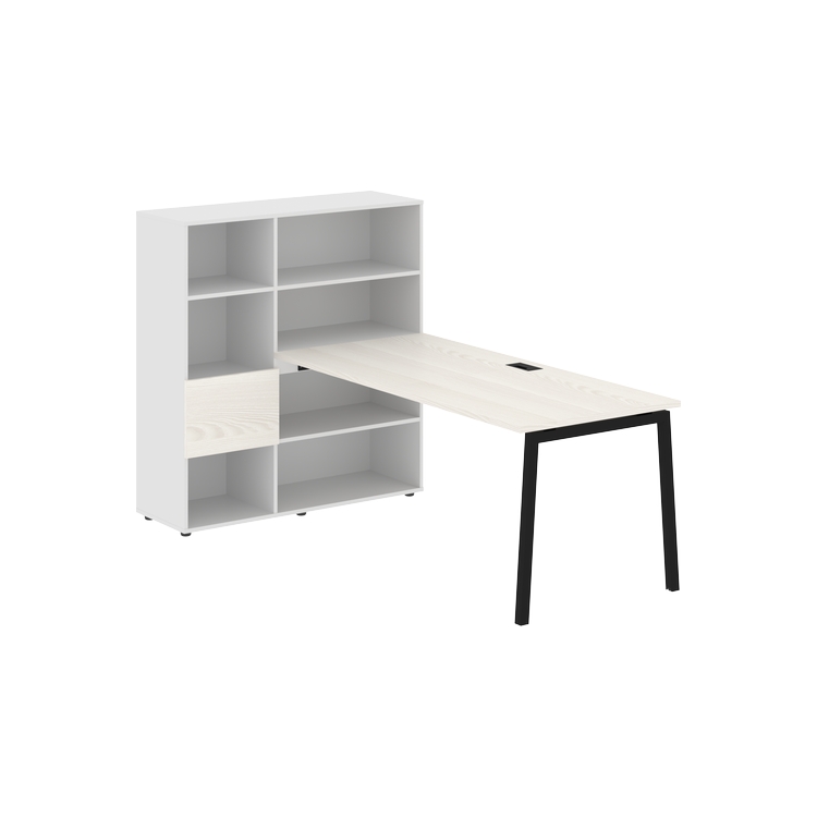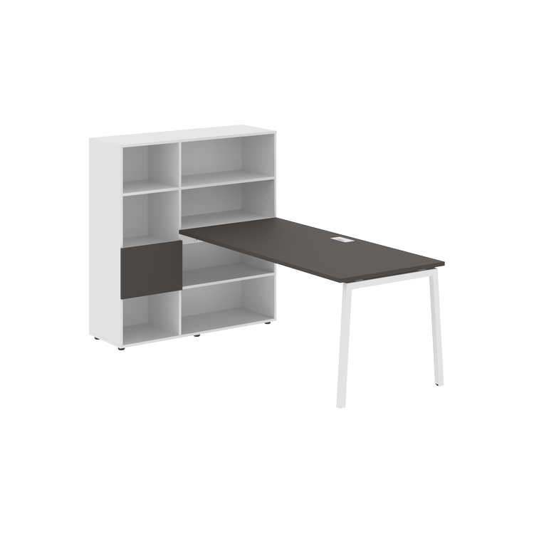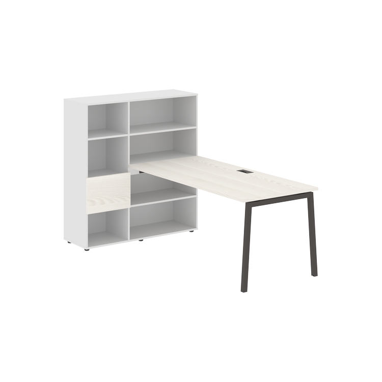Столешница глубиной 800 мм, комплектуется регулируемой опорой L-образной формы из профиля трубы 40х40, комплектом телескопических траверс и двумя кронштейнами для крепления к стеллажу.