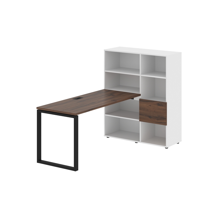 Каркасы стеллажей полностью из ЛДСП т.18 мм с кромками ПВХ т.2 и 0,45 мм, задняя стенка из ЛДСП. Комплектуется малой дверью в цвет столешницы и регулируемыми опорами h= 27 мм.
