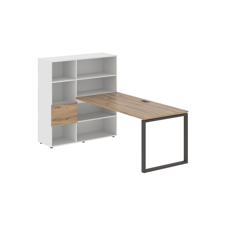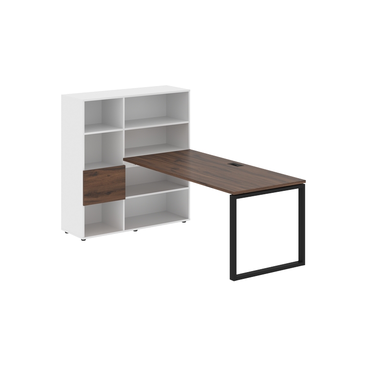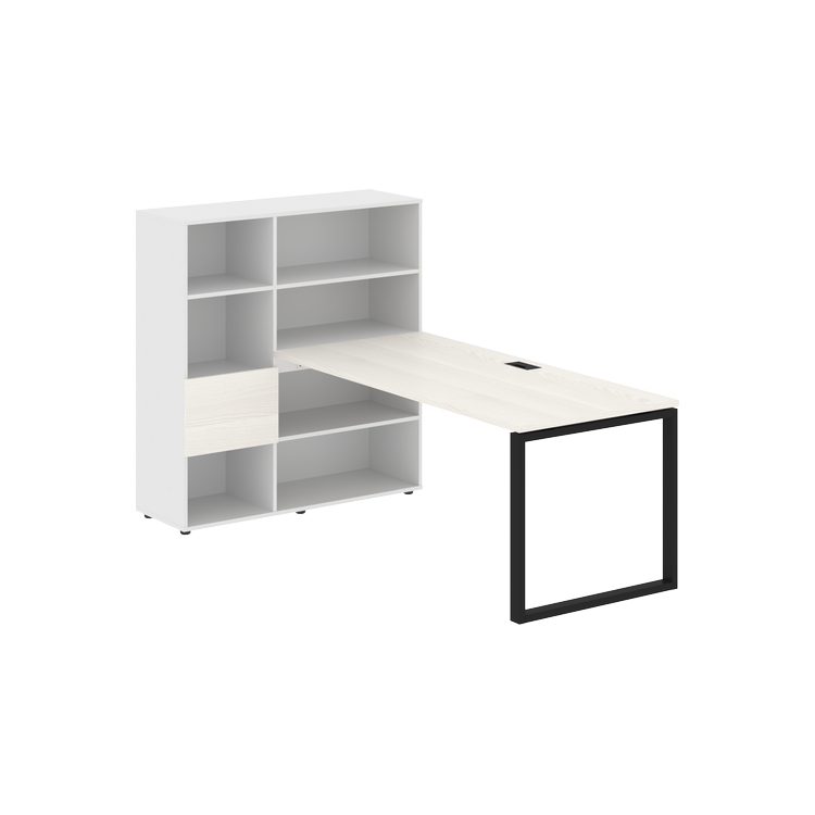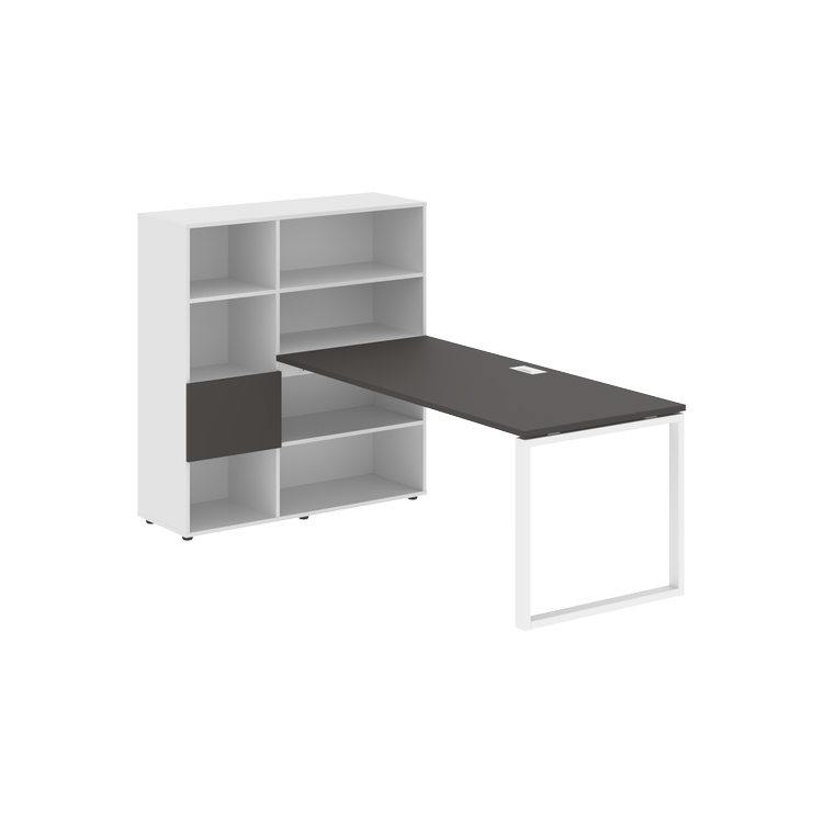Каркасы стеллажей полностью из ЛДСП т.18 мм с кромками ПВХ т.2 и 0,45 мм, задняя стенка из ЛДСП. Комплектуется малой дверью в цвет столешницы и регулируемыми опорами h= 27 мм.