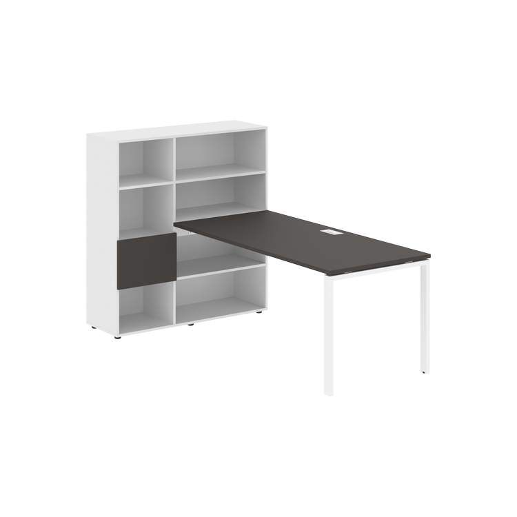 Столешница глубиной 800 мм, комплектуется регулируемой опорой П-образной формы из профиля трубы 60х30, комплектом телескопических траверс и двумя кронштейнами для крепления к стеллажу.