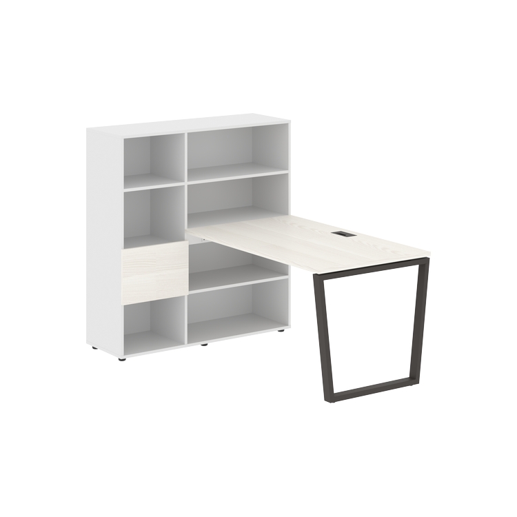 Столешница глубиной 800 мм, комплектуется регулируемой опорой V-образной формы из профиля трубы 60х30, комплектом телескопических траверс и двумя кронштейнами для крепления к стеллажу.