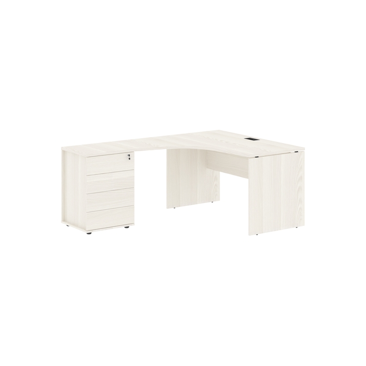 Столешница стола из ЛДСП т.25 мм с кромками ПВХ по периметру т.2 мм. Комплектуется металлическим кабель-каналом габаритом 160х80х25 мм. Опоры из ЛДСП т.18 мм с регулируемыми опорами внизу.