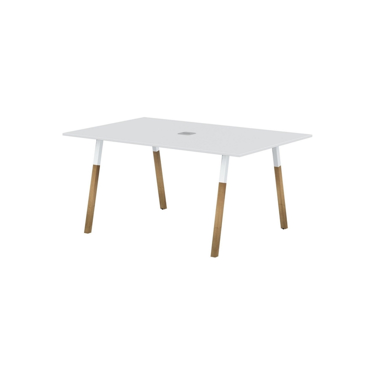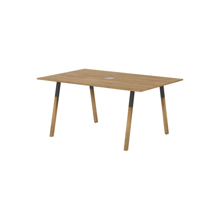 Столешница прямоугольная из ЛДСП т.18 мм. c кромкой ABS т.2 мм, комплектуется квадратной заглушкой кабель-канала в центре, 2-мя траверсами и комбинированными опорами А-образной формы, верхняя часть из трубы 40х40 мм и нижняя часть из массива бука; отделка – масло-воск.