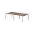 Столешница из ЛДСП т. 25 мм с металлическими прямоугольными заглушками (кабель-каналами) в центре каждой столешницы. Опоры металлокаркаса П-образной формы из полированной нержавеющей стали, труба 60х30х1,5 мм с регулировкой внизу.